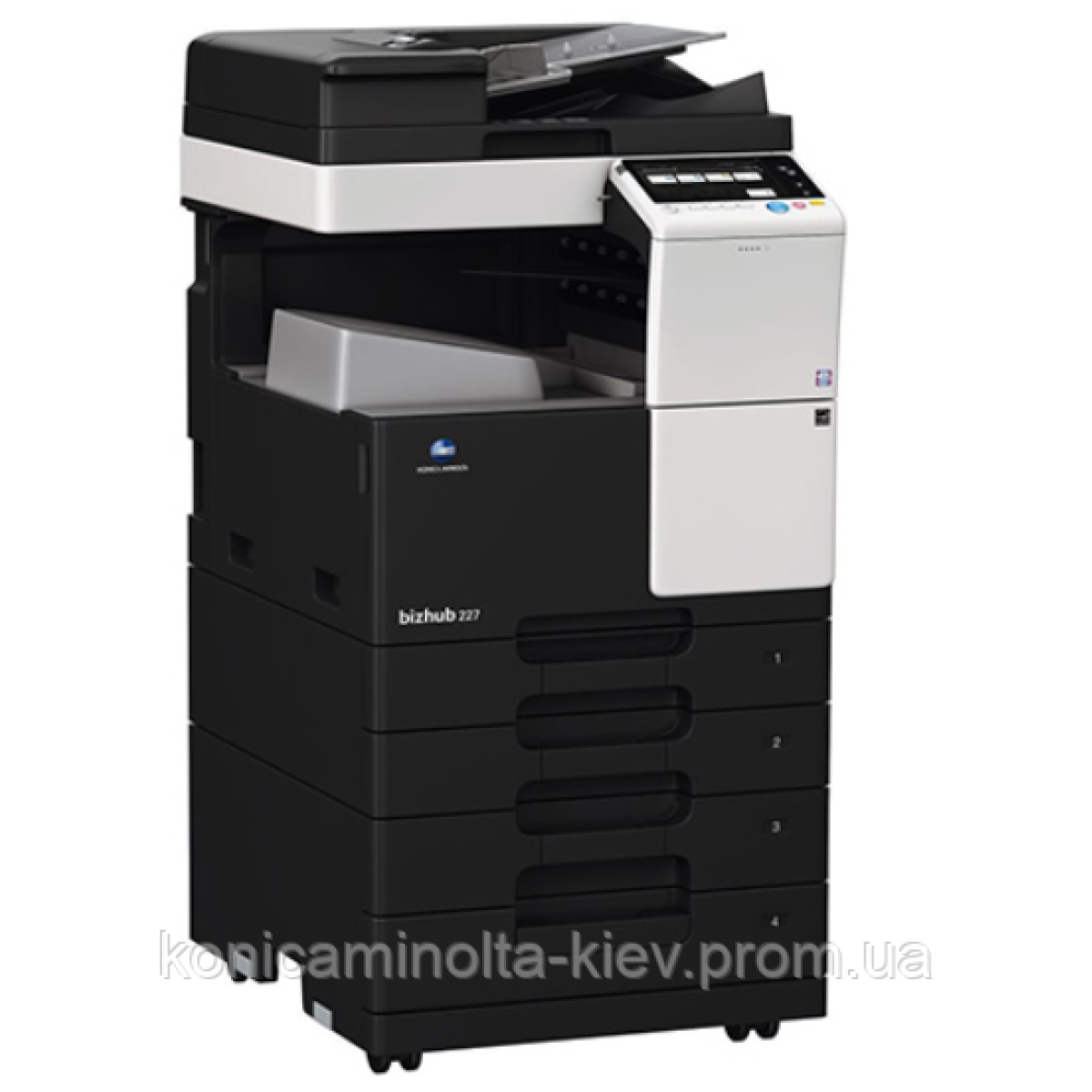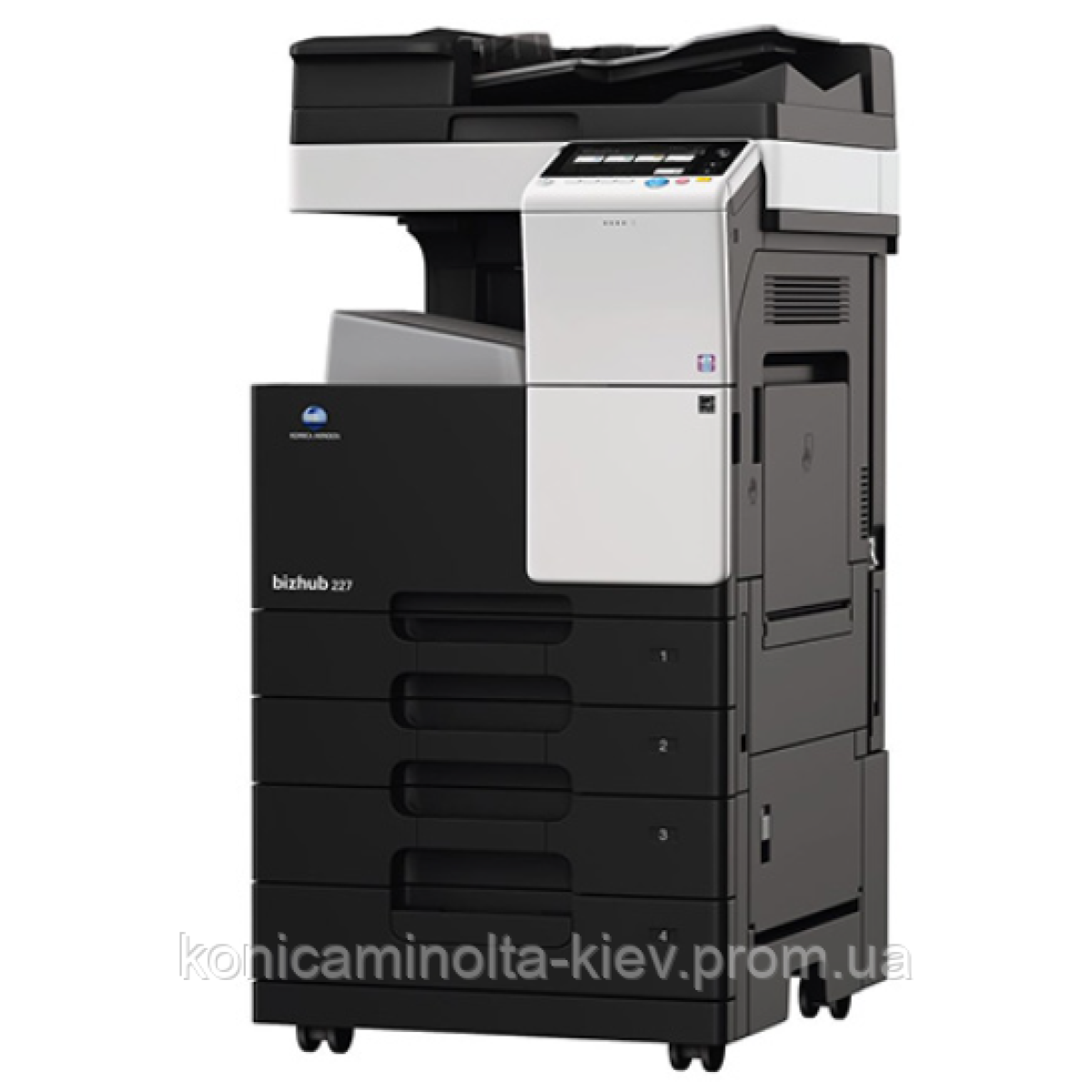 bizhub 227 - монохромний багатофункціональний мережевий пристрій формату A3. Копір / принтер / сканер / (факс опціонально). Двосторонній друк стандартно.