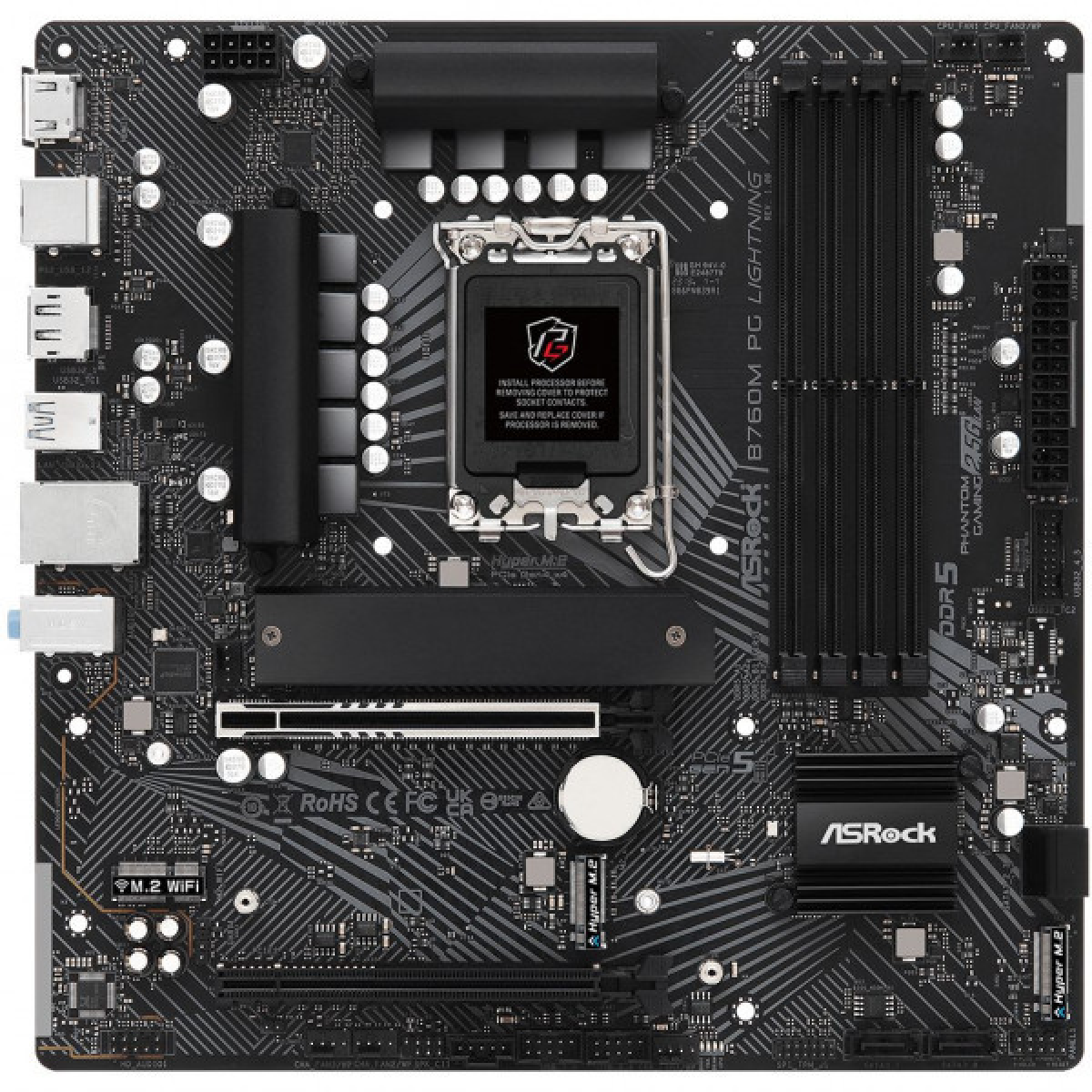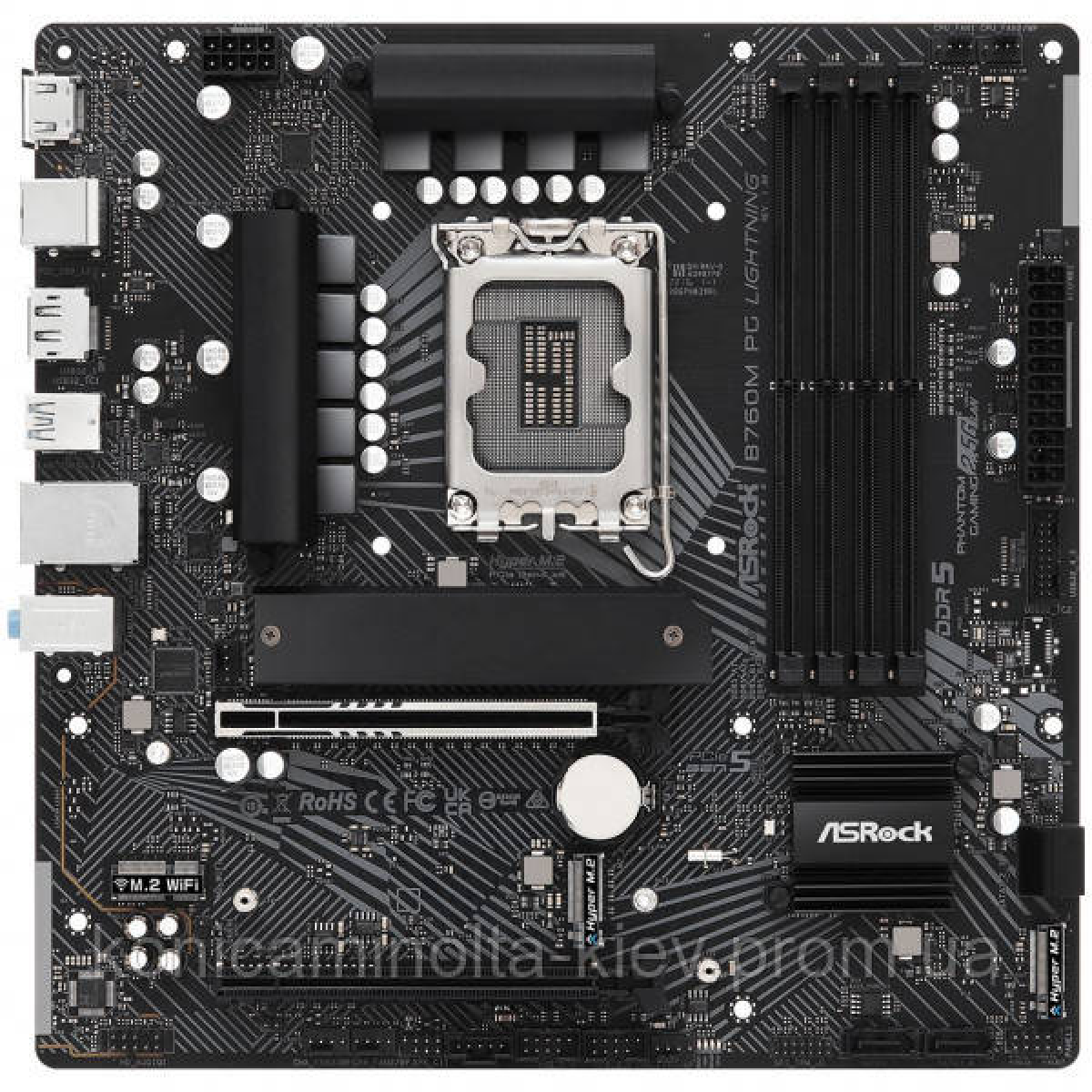 ASRock B760M PG LIGHTNING (1700/B760, 4*DDR5, 2xPCIex16, 4xSATAІІІ, 3xM.2, 2.5GLan, 7.1ch, mATX) (B760M PG