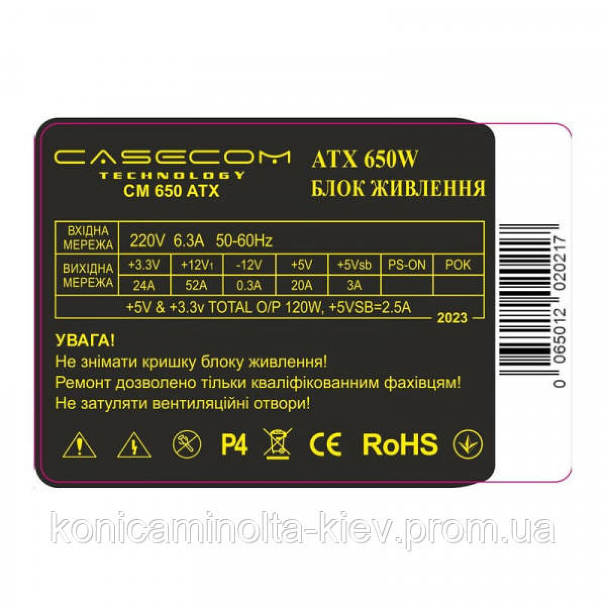 БЖ 650W Casecom, 120mm, 4хSATA, Bulk (CM 650 ATX)