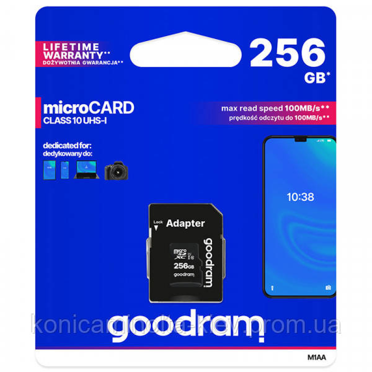 Memory card Secure Digital Micro 256Gb GoodRAM SDXC (class 10 UHS I U1) Retail + adapter (M1AA-2560R12#)