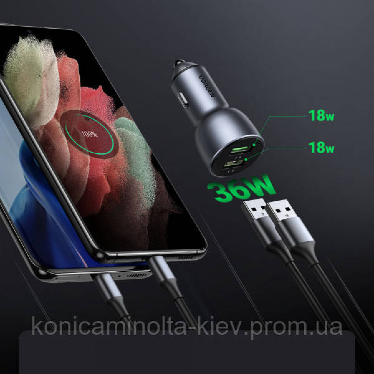 Автозарядка 2xUSB 36W (USB-A) QC 4.0 Сіра (CD213) UGREEN (10144)