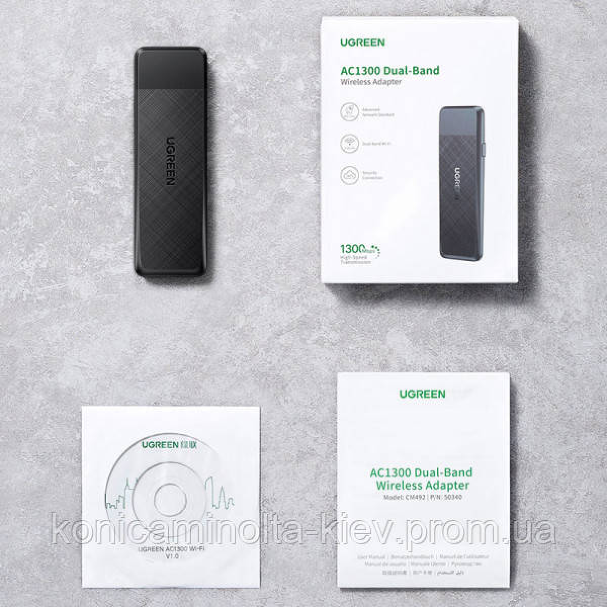 Адаптер WiFi AC1300 2.4GHz&5GHz USB 3.0 CM492 Ugreen Black (50340)