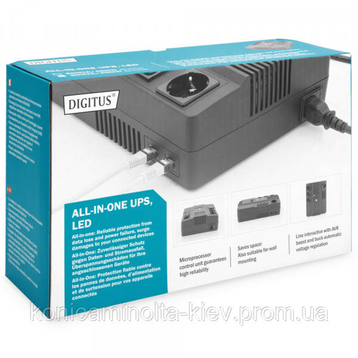 ДБЖ Digitus Line-Interactive, 800VA/480W, LED, 4xSchuko/3xC13, RJ45, USB (DN-170111)