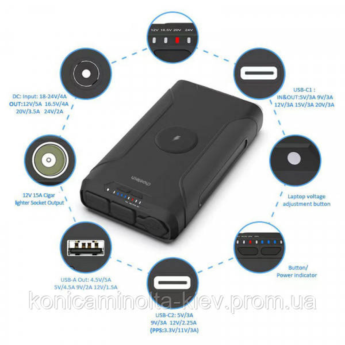 УМБ Choetech 69600mAh, PD3.0 65W USB-Cх2, Car 12V/15A, DC 5-24V/2A, USB 18W, QI10W, LED + БЖ (B661-EUBK)