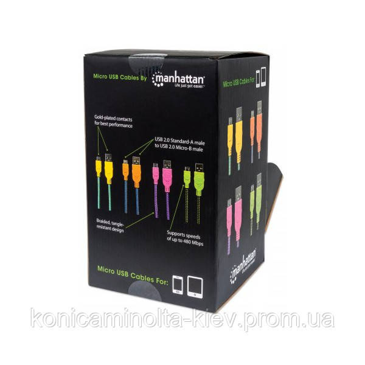 Кабель USB AM-micro BM, 0.5 м, кольорове обплетення, Box (60 шт) Manhattan (394178)
