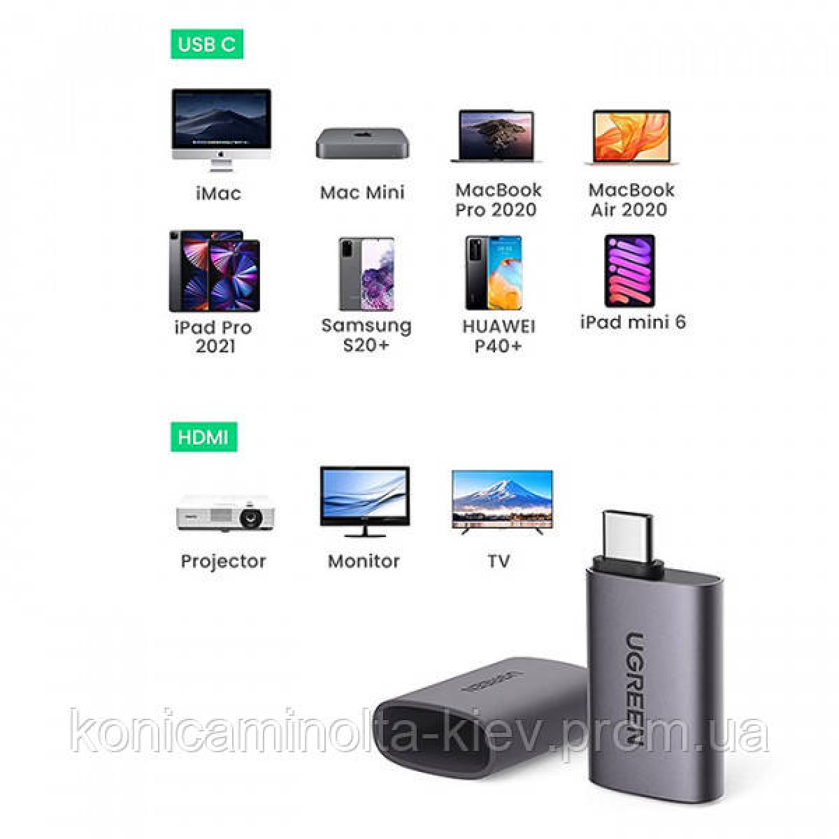 Перехідник USB 2.0 Type-C --> HDMI F UGREEN (US320) Косм Сірий (70450)