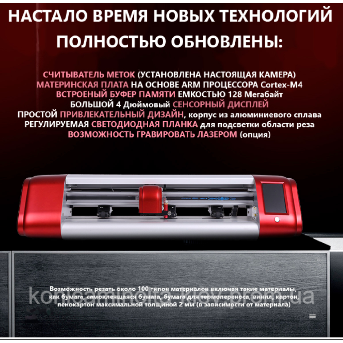 Устройство оснащено системой высокоточного распознавания любой метки на различных материалах, включая цветные, отражающие и прозрачные. Метка может быть любой – отпечатанной, вырезанной, выгравированной, тисненой и даже нарисованной.