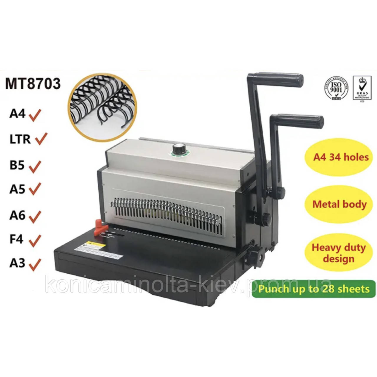 Біндер на металеву пружину YIBO MT8703 квадратні отвори