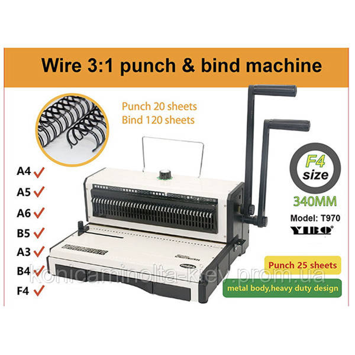 Біндер YIBO T970 призначений для зшивання аркушів металевою пружиною.