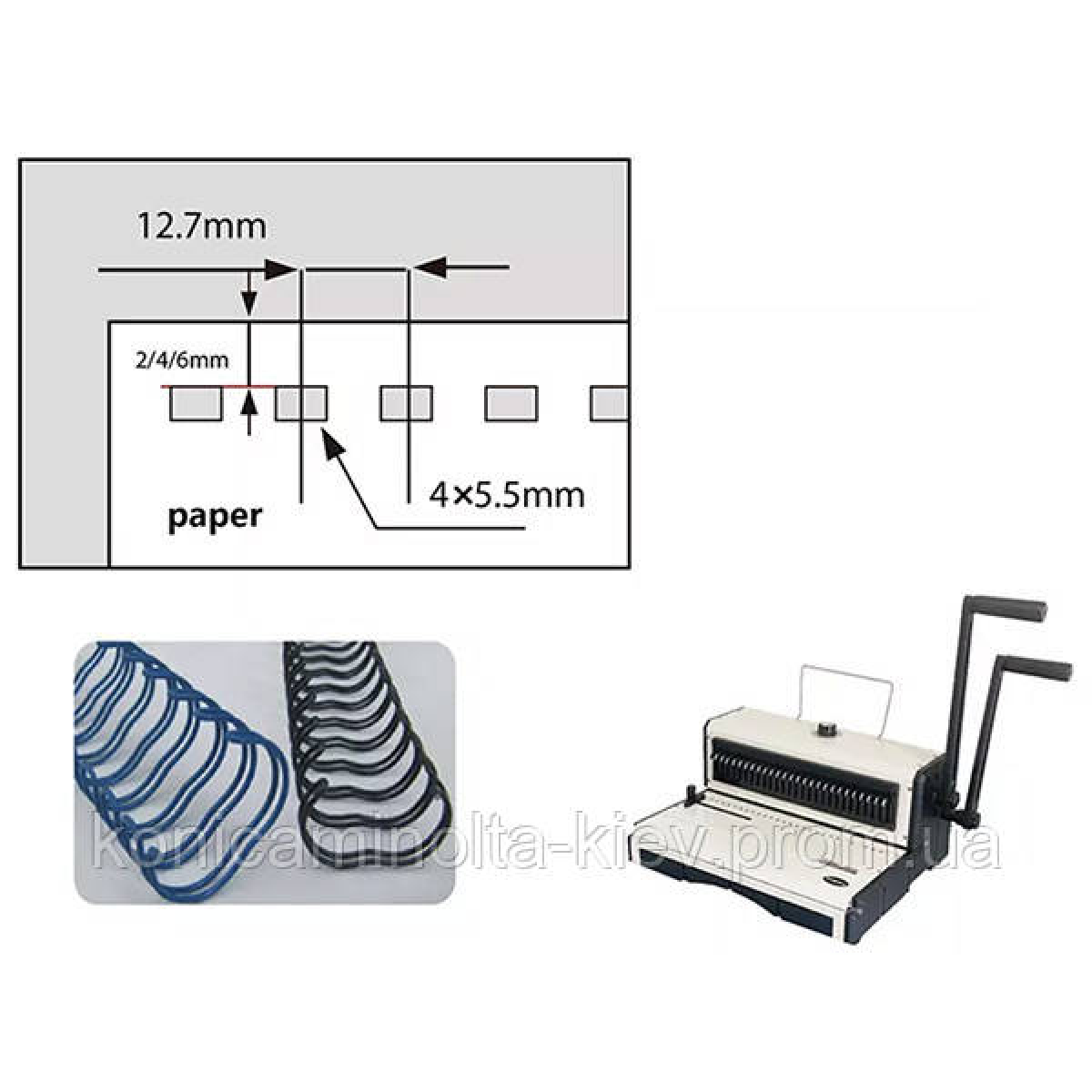 Переплітає до 250 аркушів (дріт 2:1)