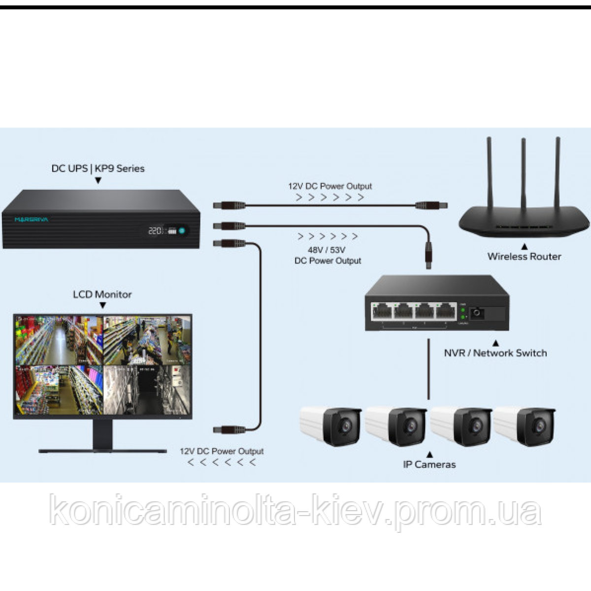 ДБЖ Marsriva DC UPS KP9 оснащене інтелектуальною системою захисту від надмірного розряду, перезарядження та короткого замикання.