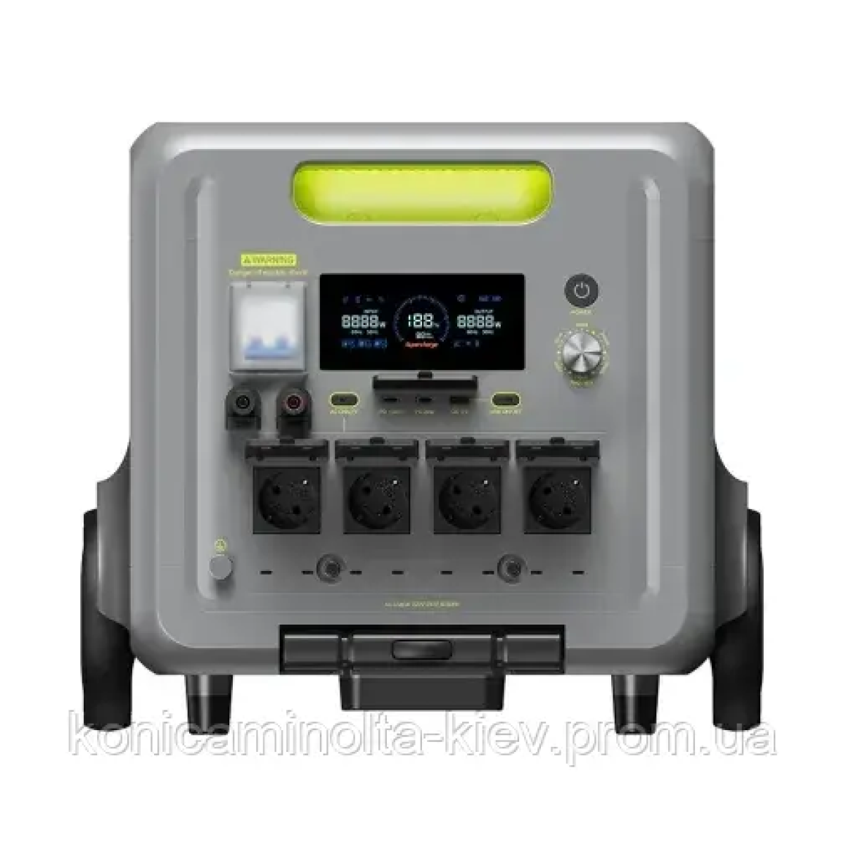 Станція оснащена широким набором виходів: декількома портами змінного струму, USB-роз’ємами, 12-вольтовими виходами та входами для швидкої зарядки від сонячних панелей. Таке різноманіття робить її універсальним інструментом — вона може одночасно працювати з побутовою технікою, заряджати мобільні пристрої та забезпечувати живлення іншим гаджетам. Габарити та вага пристрою досить значні, але це природна плата за його ємність та потужність.