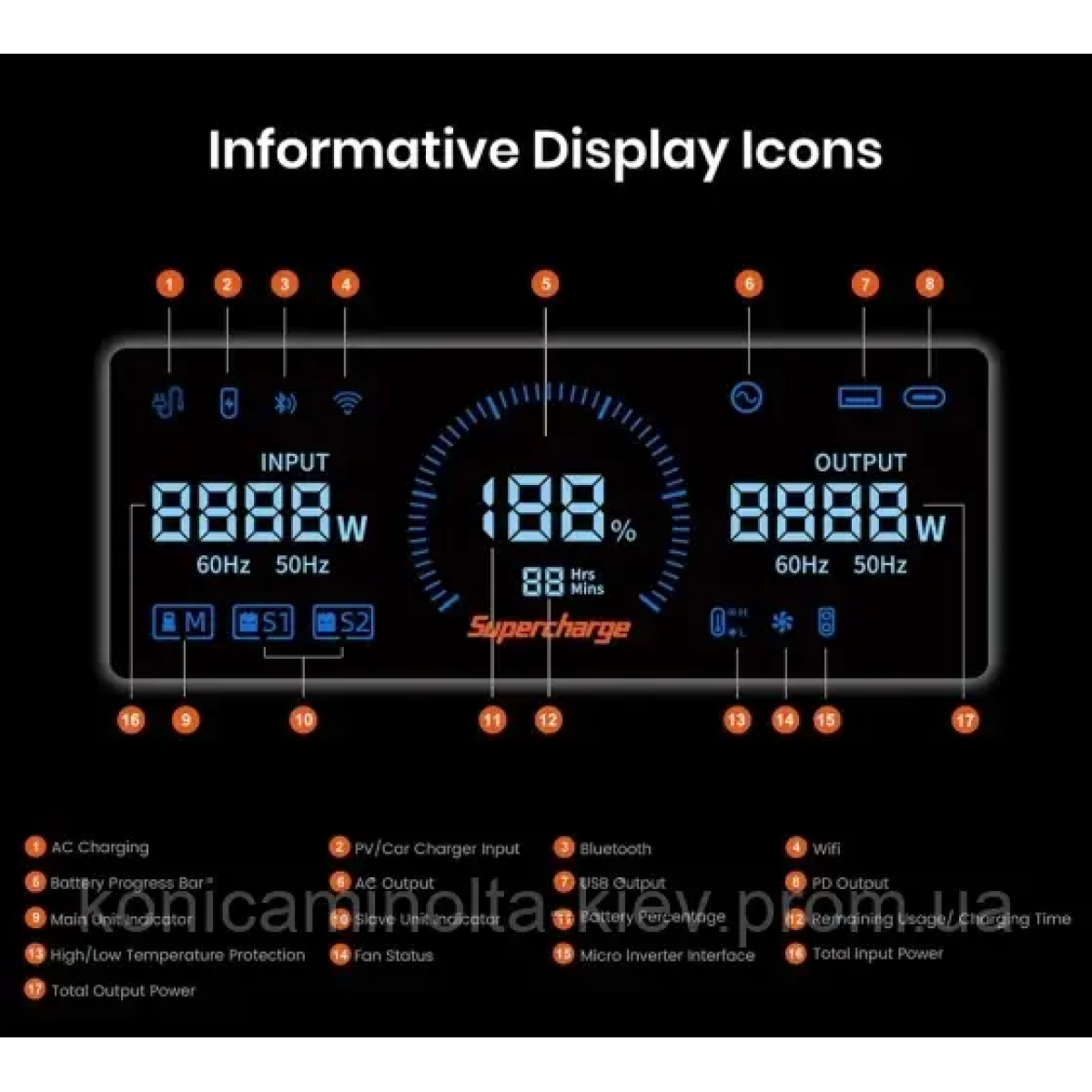 Вхід зарядки змінного струму: макс. 3000 Вт